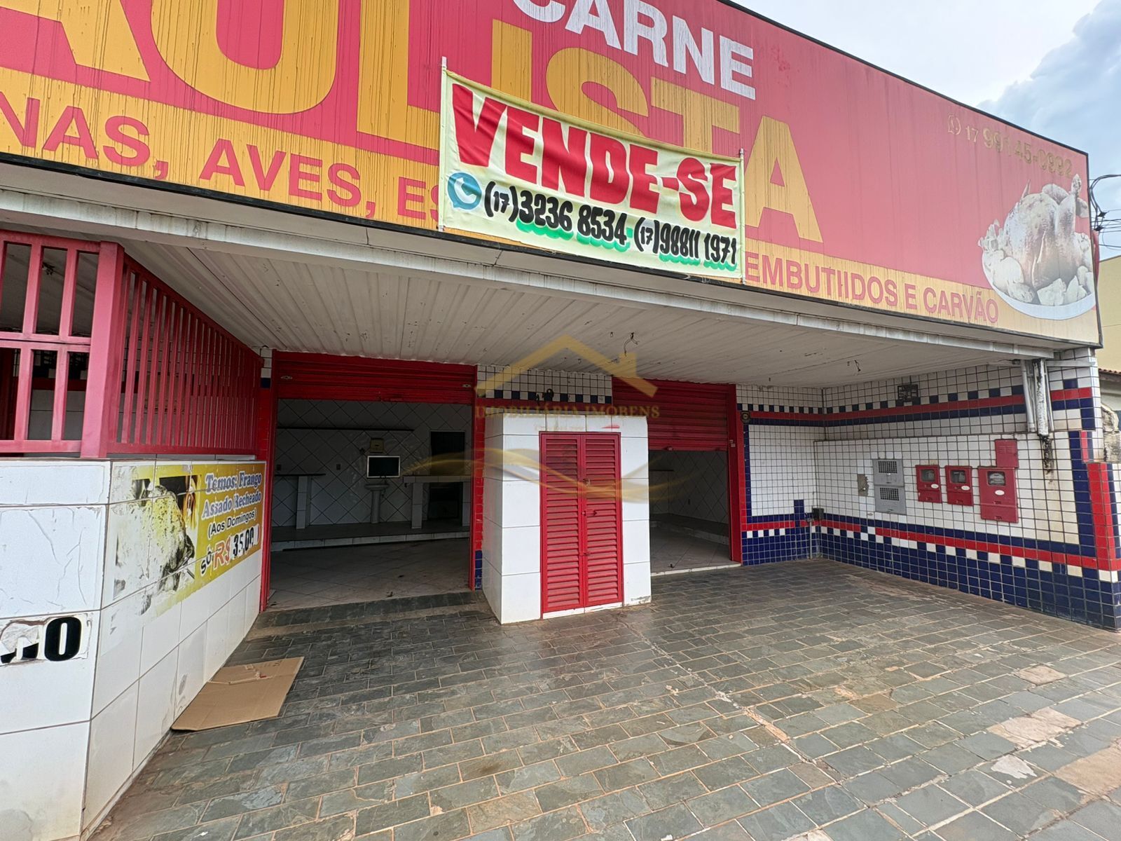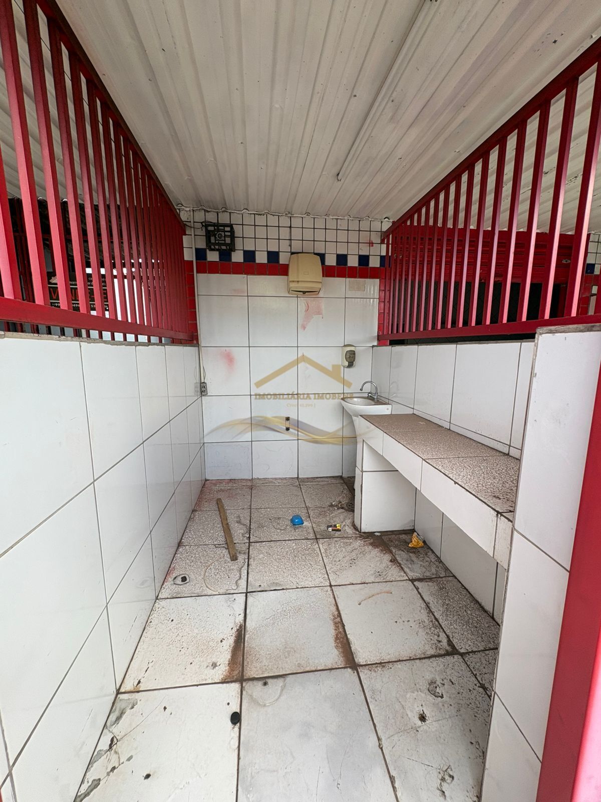 SALÃO COMPOSTO POR SALÃO PRINCIPAL DE DUAS PORTAS, COM PAREDES REVESTIDAS, MAS DEPOSITO, BANHEIRO, LAVANDERIA.